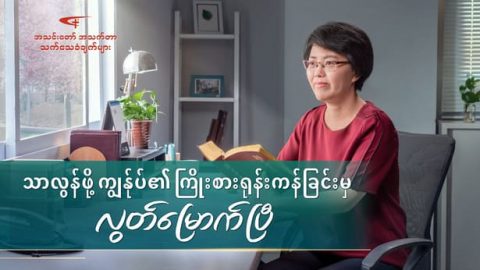 နောက်တော့ ဘုရားနှုတ်ကပတ်တော်ကျမ်းပိုဒ်တချို့ကို ကျွန်မ ဖတ်တယ်။ “၎င်းတို့ စကားပြောသည့်ပုံစံ မည်သို့ပင်ဖြစ်စေကာမူ၊ အခြားသူများအား ၎င်းတို့ကို အထင်ကြီးစေဖို့နှင့် ၎င်းတို့အား ကိုးကွယ်စေဖို့၊ ထိုသူများ၏စိတ်နှလုံးများထဲ၌ နေရာတစ်ခုခုကို ရရှိဖို့နှင့် ထိုနေရာတွင် ဘုရားသခင်၏နေရာကိုပင် အစားထိုးယူဖို့တို့အတွက် အစဉ် ဖြစ်လေသည်— ဤအရာများသည် အန္တိခရစ်တို့ မိမိတို့ကိုယ်ကို သက်သေခံသည့်အခါ ၎င်းတို့ စွမ်းဆောင်ရရှိလိုသည့် ရည်မှန်းချက်ပန်းတိုင်များ အားလုံးဖြစ်သည်။ ၎င်းတို့ပြောသမျှ၊ ဟောကြားသမျှနှင့် မိတ်သဟာယပြုသမျှတို့၏ နောက်ကွယ်ရှိ အရင်းခံအကြောင်းသည် လူများအား ၎င်းတို့ကို အထင်ကြီးစေဖို့နှင့် ကြည်ညိုလေးစားစေဖို့အတွက် ဖြစ်သည်။ ထိုသို့သော အပြုအမူသည် အခြားသူများ၏ စိတ်နှလုံးများ၌ နေရာတစ်ခုယူဖို့အလို့ငှာ၊ မိမိတို့ကိုယ်ကို ချီးမြှောက်ပြီး သက်သေခံခြင်း ဖြစ်လေသည်။ ဤလူများ စကားပြောသည့် ပုံစံသည် လုံးလုံးလျားလျား တူညီခြင်း မရှိသော်ငြားလည်း၊ အနည်းနှင့်အများ တူညီကြသည်။ ယင်း၌ မိမိတို့ကိုယ်ကိုယ် သက်သေခံခြင်းနှင့် လူများအား ၎င်းတို့ကို ကြည်ညိုလေးစားစေခြင်း အကျိုးသက်ရောက်မှုရှိသည်။ ထိုသို့သော အပြုအမူများသည် အလုပ်လုပ်သည့် လူအားလုံး၌ အနည်းနှင့်အများဆိုသလို ရှိကြသည်။ ၎င်းတို့သည် မိမိတို့ကိုယ်ကိုယ် ရပ်တန့်နိုင်ခြင်း မရှိသည့်၊ သို့မဟုတ် ၎င်းတို့ ချုပ်တည်းဖို့ ခက်ခဲလာသည့် အတိုင်းအတာတစ်ခုအထိ ရောက်ပြီး ၎င်းတို့က ဘုရားသခင် သို့မဟုတ် ကိုးကွယ်ထိုက်သည့် အခြားသူတစ်ဦး ဖြစ်သည့်အလား လူများအား ၎င်းတို့ကို ဆက်ဆံစေဖို့ဖြစ်သည့် အထူးသဖြင့် ခိုင်မာပြီး သိသာထင်ရှားသည့် ရည်ရွယ်ချက်နှင့် ပန်းတိုင်တစ်ခုရှိပါက၊ ပြီးလျှင် ထို့နောက်တွင် ၎င်းတို့က လူများကို ထိန်းချုပ်ခြင်းနှင့် ချုပ်ချယ်ကန့်သတ်ခြင်းနှင့် သူတို့အား ကျိုးနွံနာခံစေခြင်း အဆင့်နှင့် ပန်းတိုင်ကို စွမ်းဆောင်ရရှိနိုင်ပါက၊ ဤအရာအားလုံး၏ သဘာဝသည် မိမိတို့ကိုယ်ကို ချီးမြှောက်ခြင်းနှင့် သက်သေခံခြင်းဖြစ်သည်။ ဤသည်မှာ အန္တိခရစ်တစ်ဦး၏သဘာဝ အစိတ်အပိုင်း အားလုံးဖြစ်သည်။ လူများသည် မိမိတို့ကိုယ်ကို ချီးမြှောက်ဖို့နှင့် သက်သေခံဖို့ အဘယ်နည်းလမ်းများကို ထုံးစံအတိုင်း အသုံးပြုကြသနည်း။ (၎င်းတို့က အရင်းအနှီး အကြောင်း ပြောကြပါသည်။) အရင်းအနှီးအကြောင်း ပြောခြင်း၌ အဘယ်အရာ ပါဝင်သနည်း။ ၎င်းတို့ ဘုရားသခင်ကို ယုံကြည်ပြီးဖြစ်သည်မှာ မည်မျှကြာပြီဖြစ်ကြောင်း၊ မည်မျှ ဒုက္ခခံပြီးဖြစ်ကြောင်း၊ ၎င်းတို့ မည်မျှ အဖိုးအခကို ပေးပြီးဖြစ်ကြောင်း၊ ၎င်းတို့ အလုပ်မည်မျှ လုပ်ပြီးဖြစ်ကြောင်း၊ ၎င်းတို့ မည်မျှ ဝေးဝေးလ